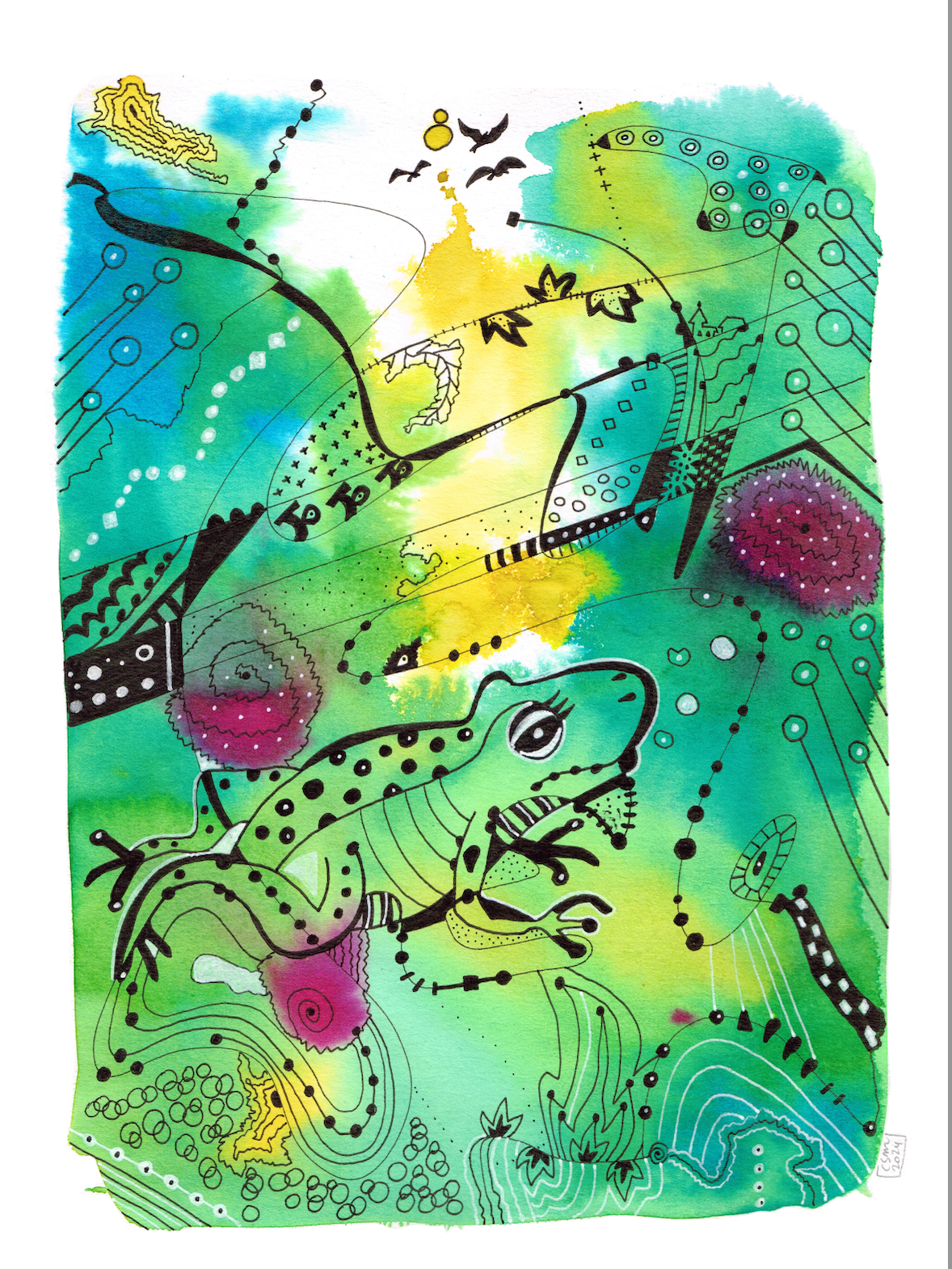 "Frog / Grenouille" Art is from french artist Corinne St Mleux, image from her original Ink Painting.
