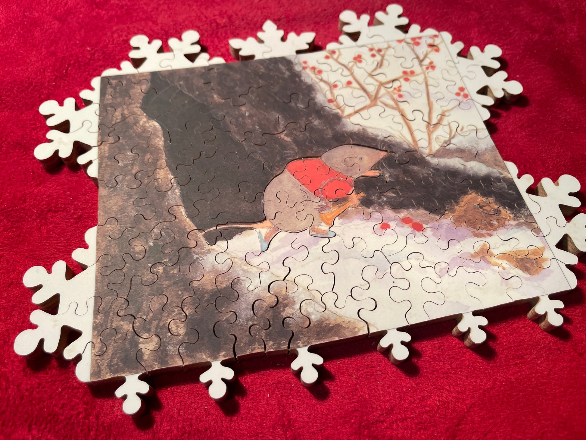 Size is 6 x 8 with snowflakes border and 87 pieces.