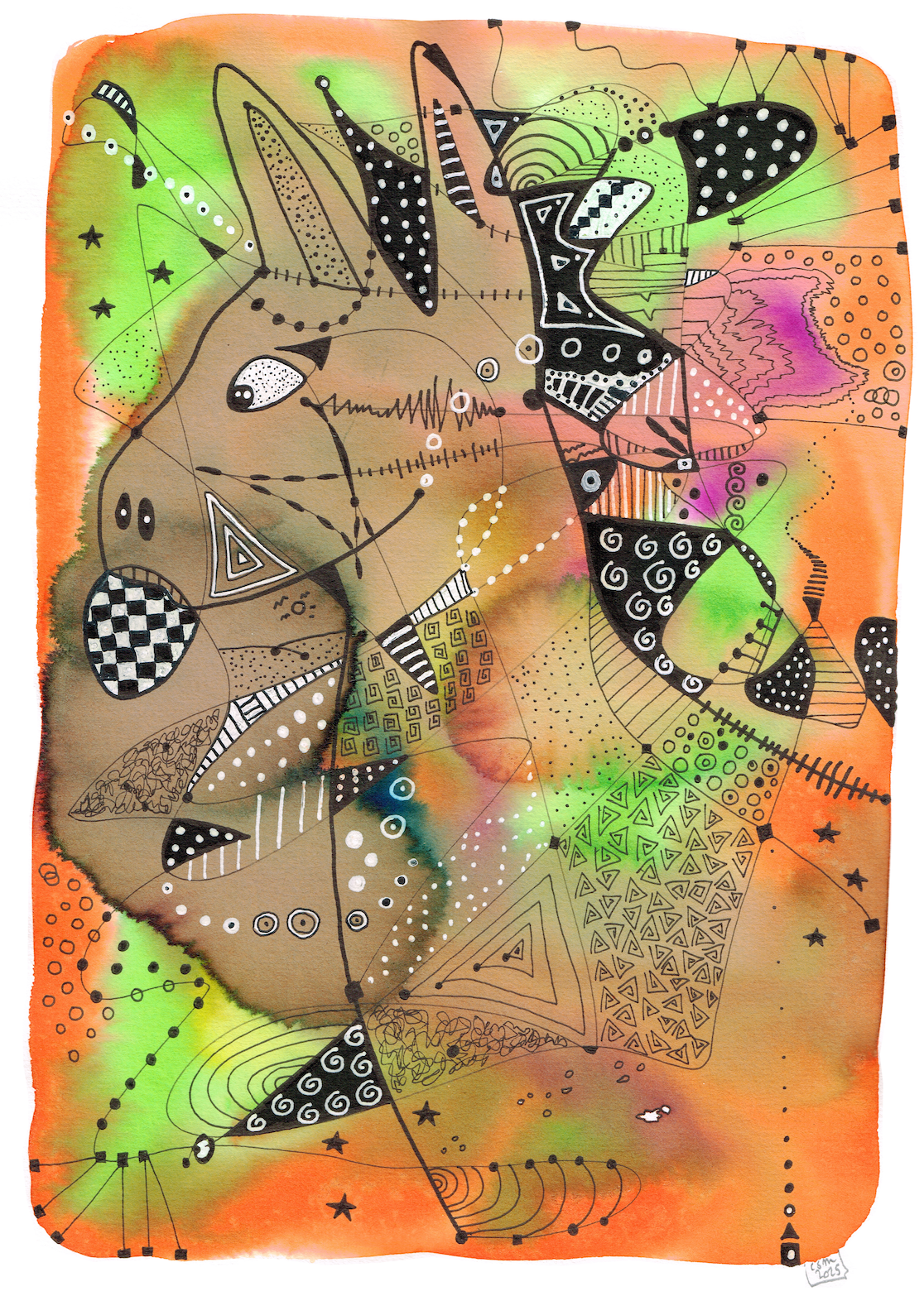 "Ane / Donkey" Art is from french artist Corinne St Mleux, image from her original Ink Painting.