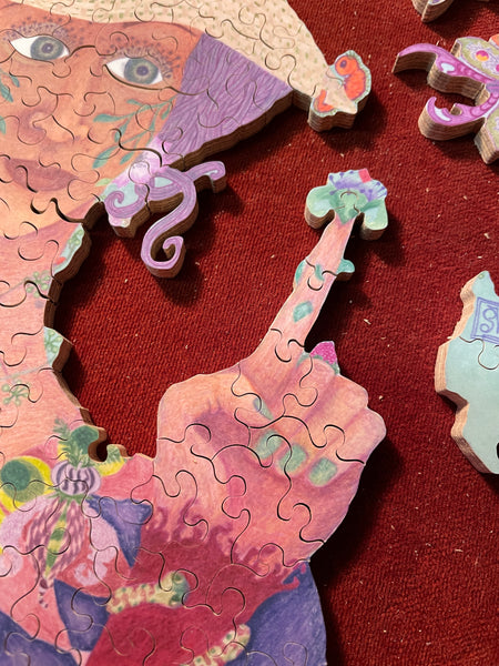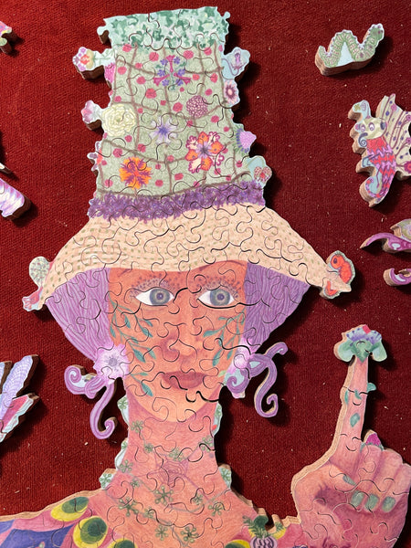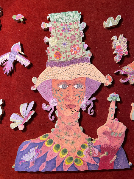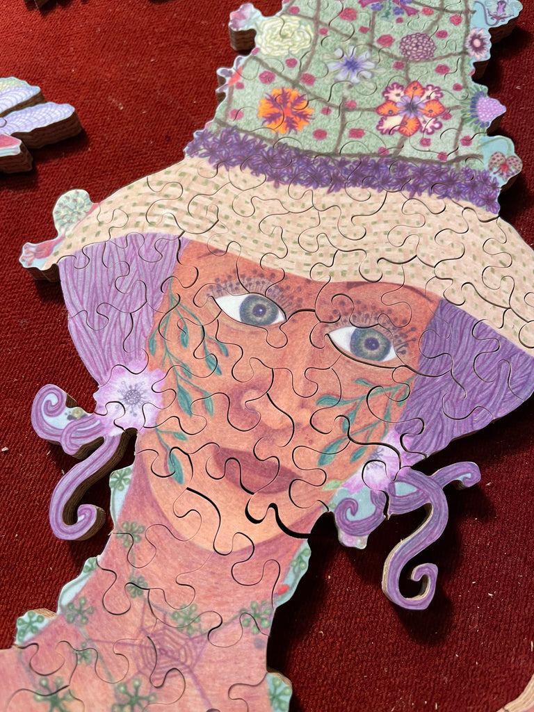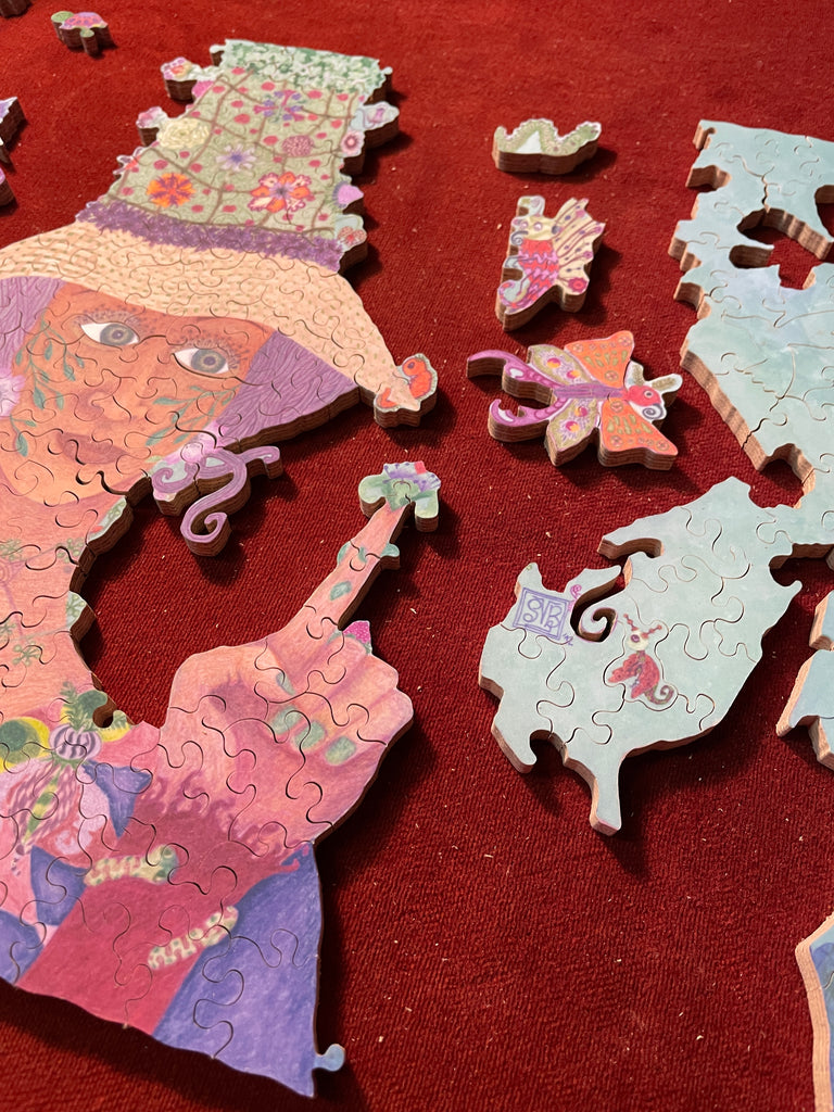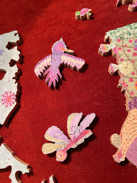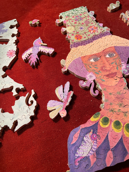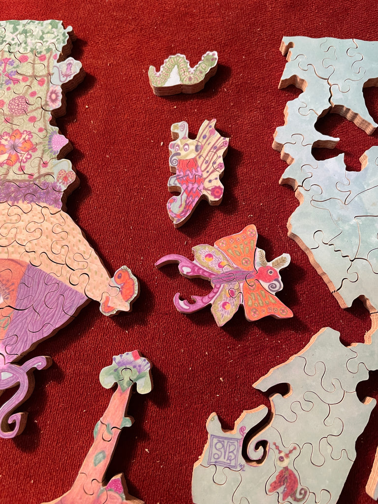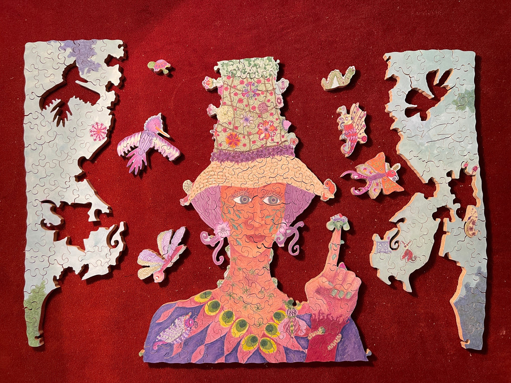 I'm cutting all my jigsaw puzzles by hand, following the flow of the Art, including some special shapes (whimsies), line cuts along the Art, interlocking or semi interlocking.